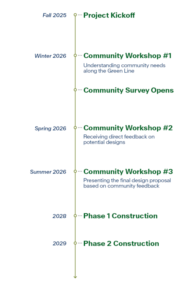 The Linden Green Line design is currently in development. Over the next several months, community members are invited to take part in a series of workshops, events, and an online survey to share ideas and feedback. Your input will help shape the future design and character of the Linden Green Line.