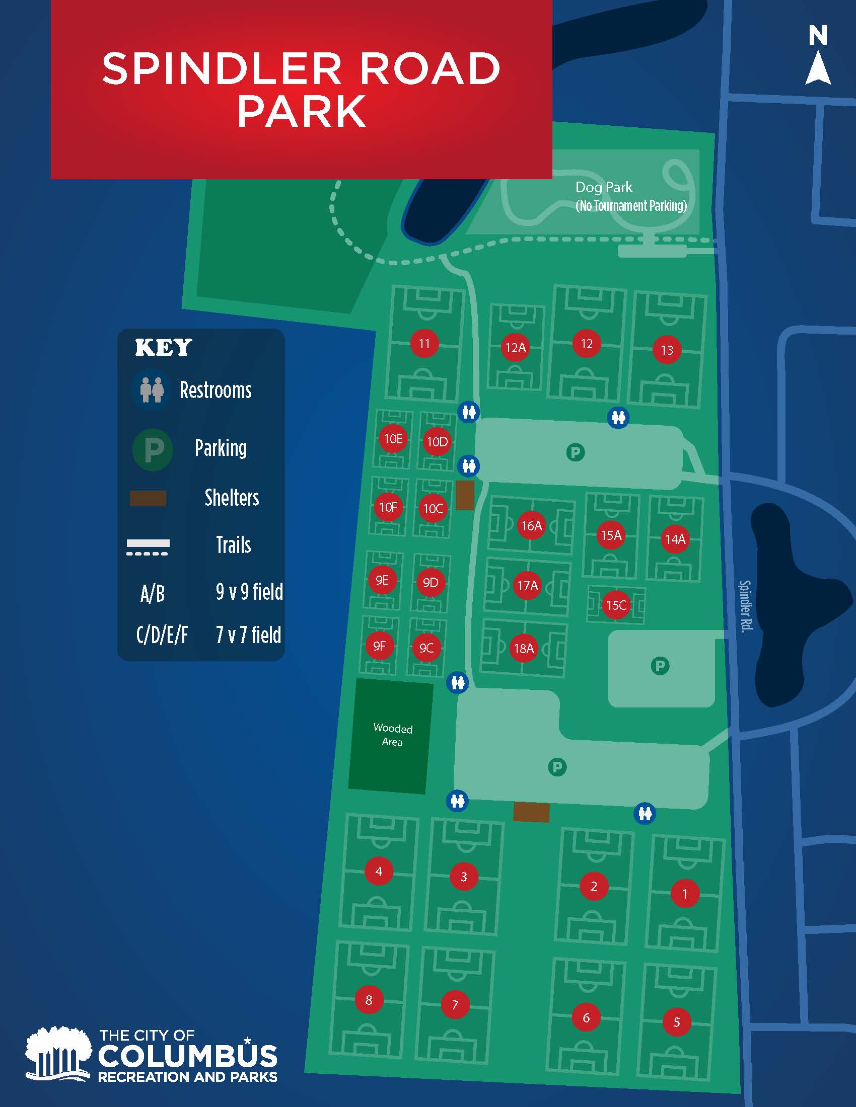 Spindler Road Dog Park contains a side for small dogs and one for large dogs. Parking (including spots for handicapped visitors), portable restrooms, picnic tables and a kiosk are available for visitors. The park contains a drinking fountain. Learn more about Dog Parks.