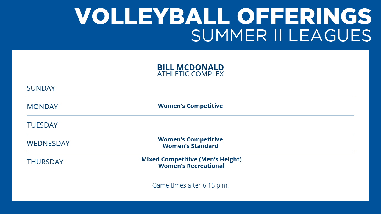 Columbus Recreation and Parks offers indoor adult volleyball leagues in the spring, summer, fall and winter seasons.